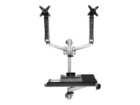 Foldable Standing Desk (WALLSTSI2) - Monteringssett (stang, musholder, håndleddsstøtte, veggmonteringsbrakett, tastaturbakke, 2 displaybøyler, 2 x fjærarmer, 2 x svivelarmer med logo, skjermskulder, veggmonteringsbøyle med låseplate, 2 x svivelarmer, musebrett, fast plate for musebakke, EVA-musepute) - for 2 LCD-skjermer / tastatur / mus - plastikk, aluminium, stål - sølv - skjermstørrelse: 13"-30" - veggmonterbar - TAA-samsvar